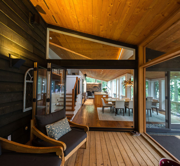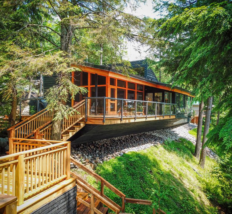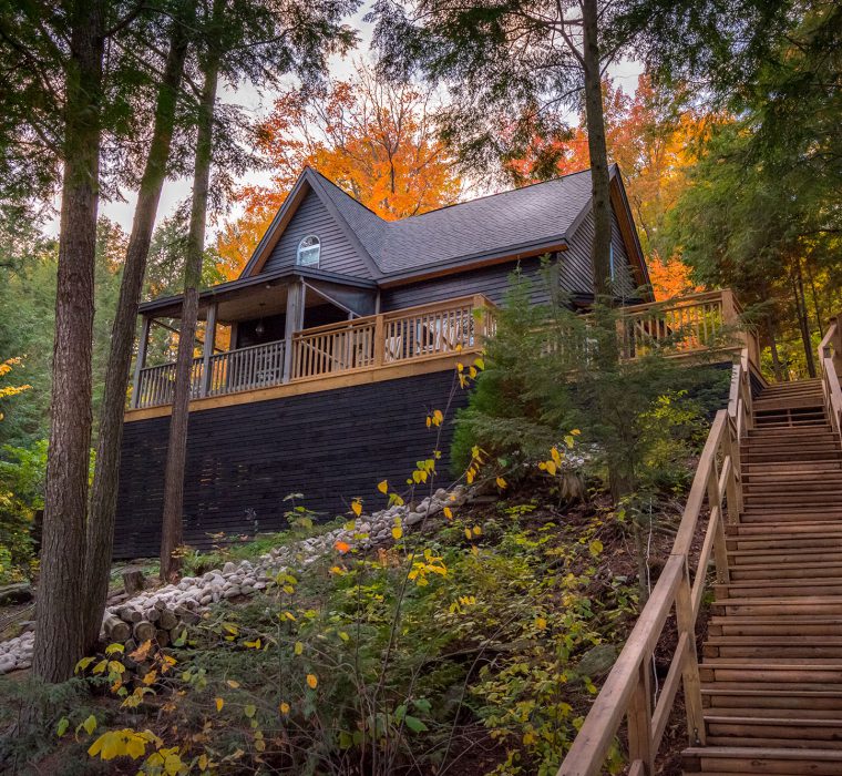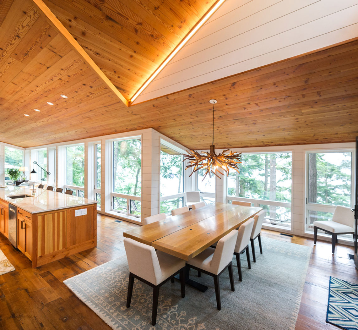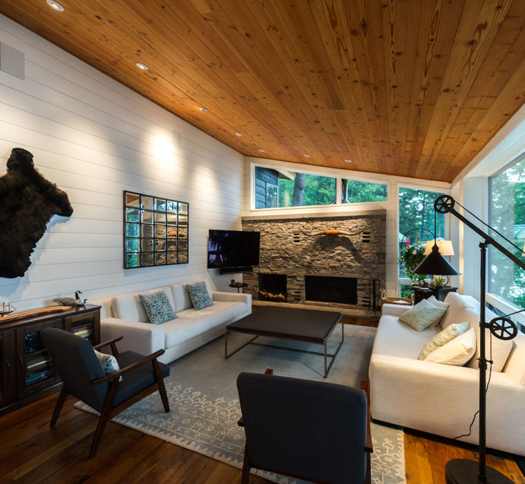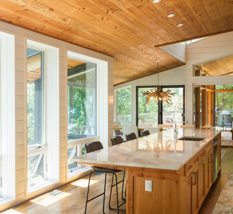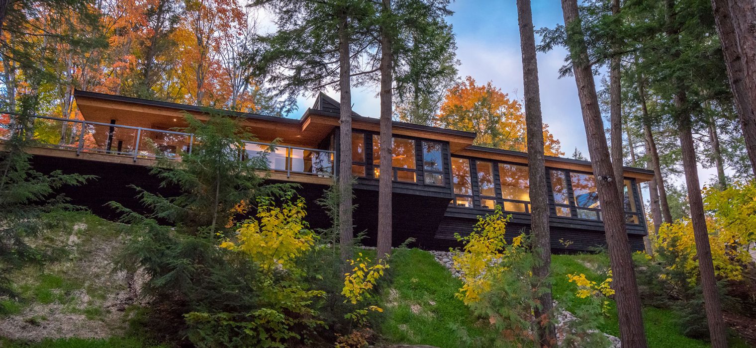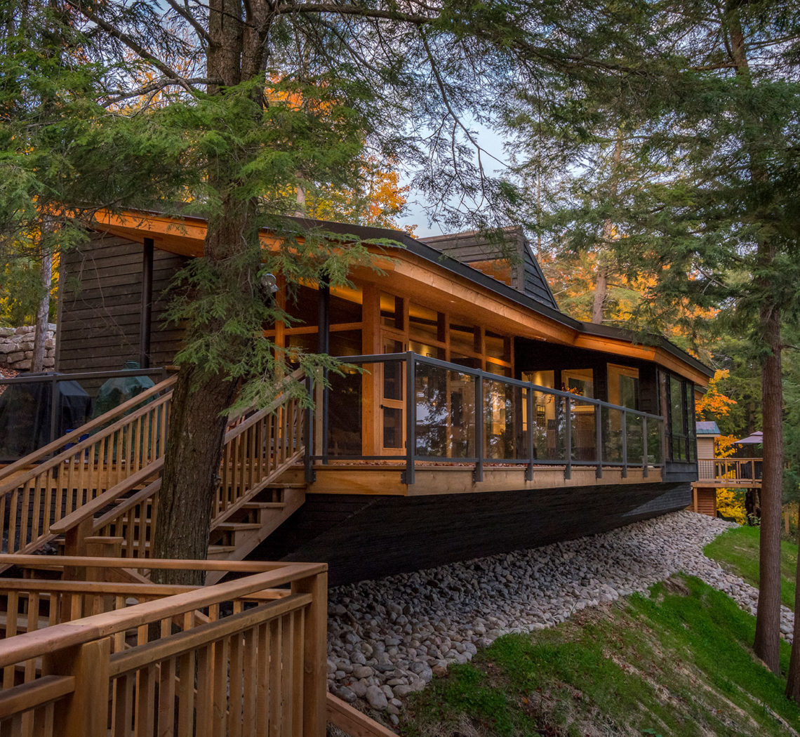 Kennisis Lake Getaway is a contemporary meets traditional home situated on Kennisis Lake. This home blends seamlessly into the natural landscape, creating a serene and welcoming living space.