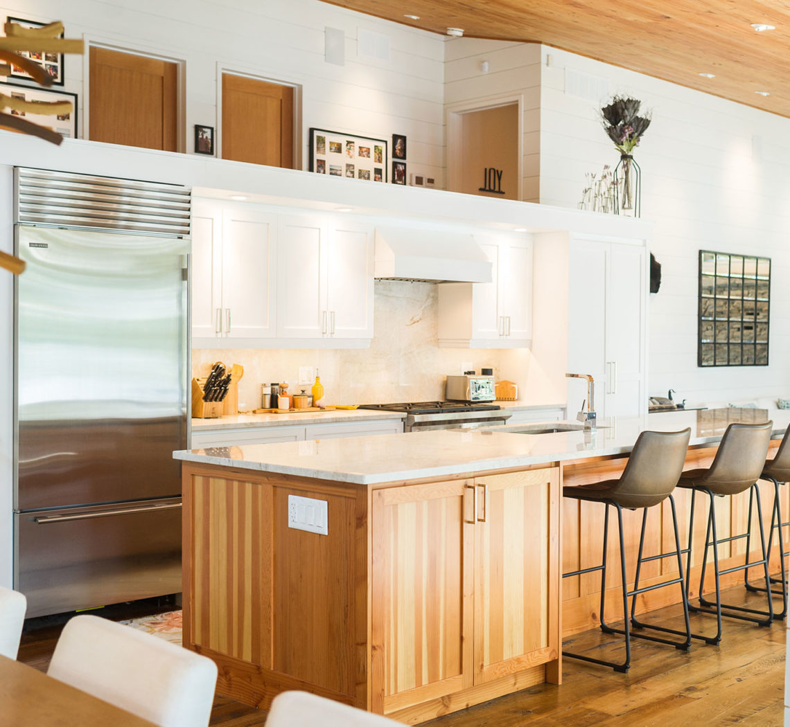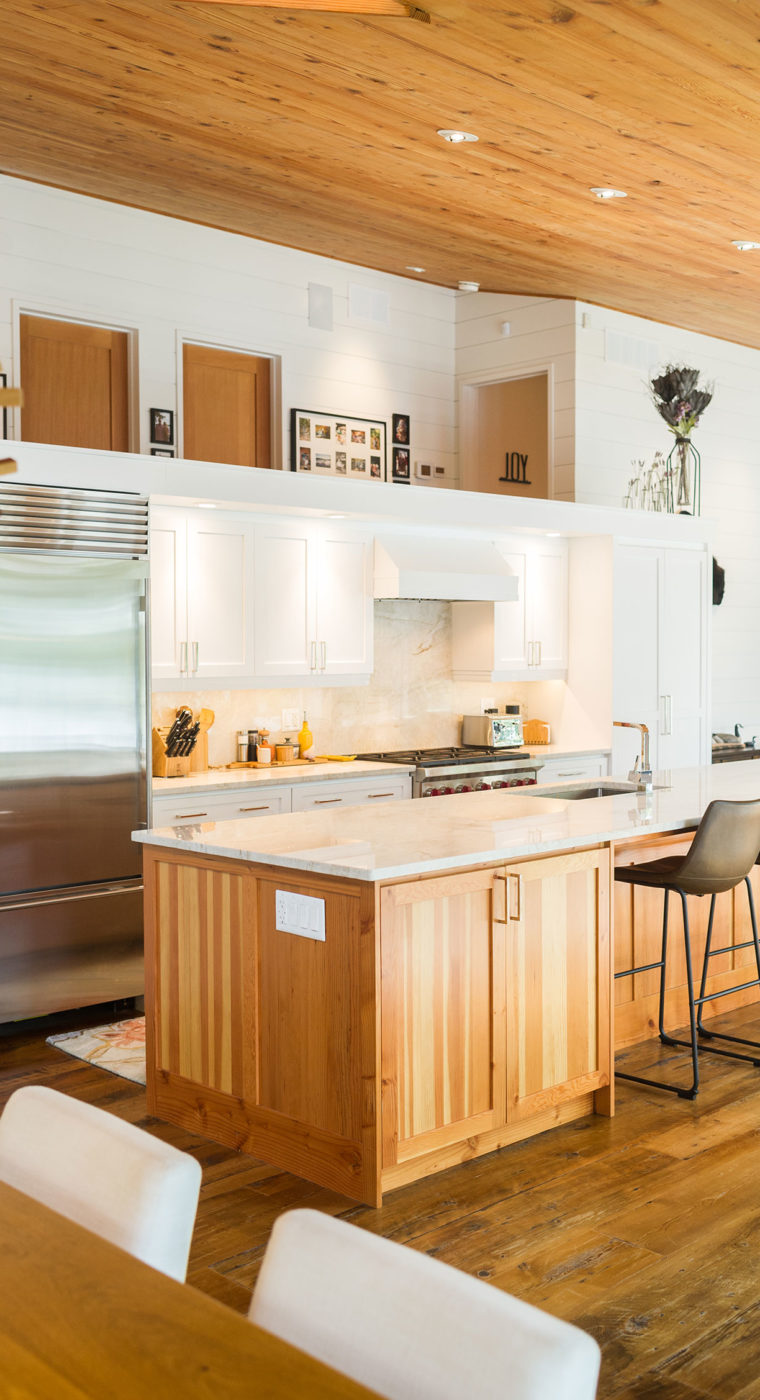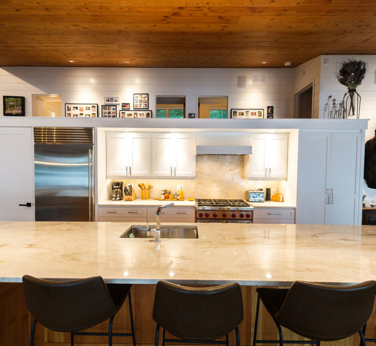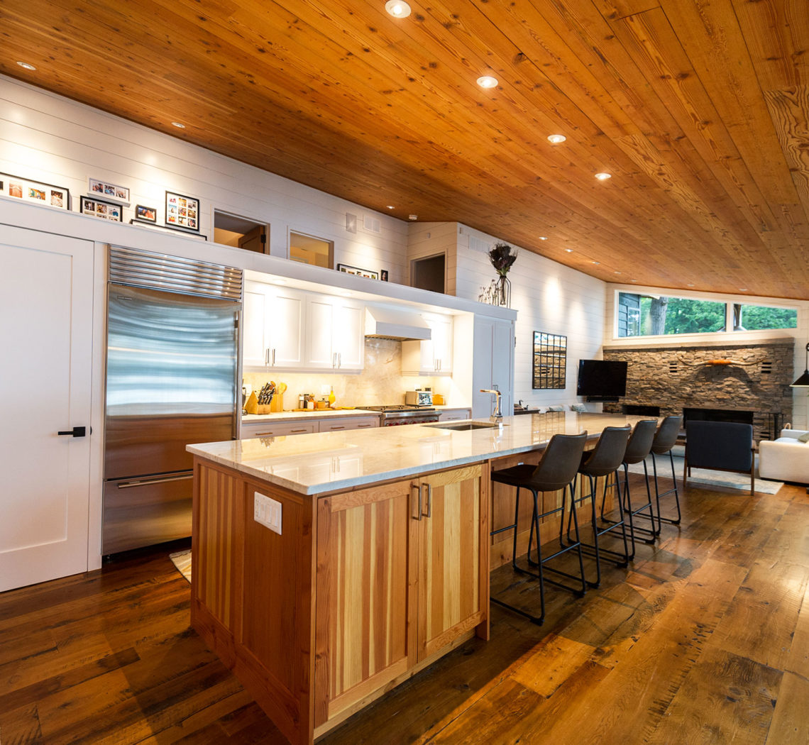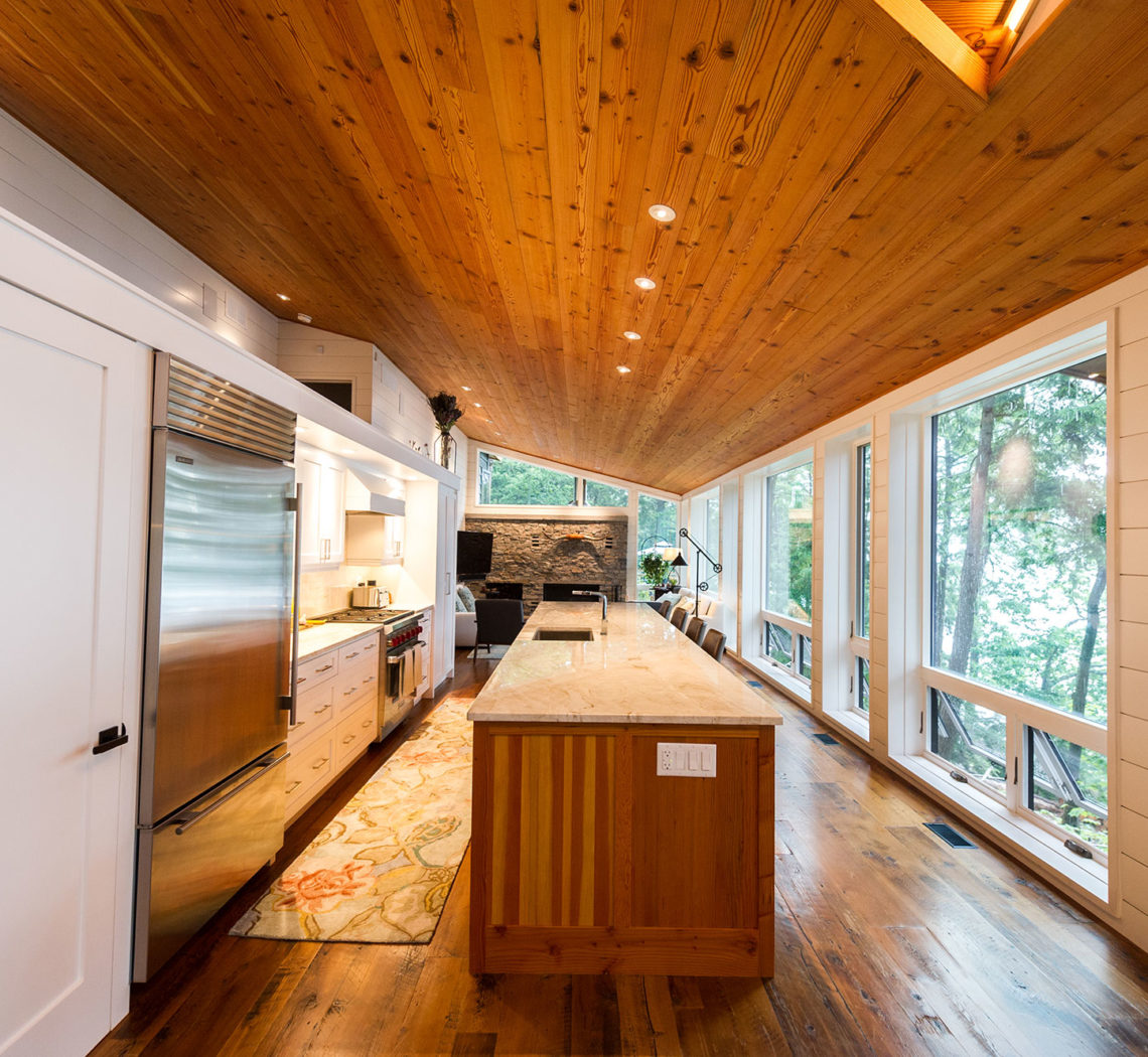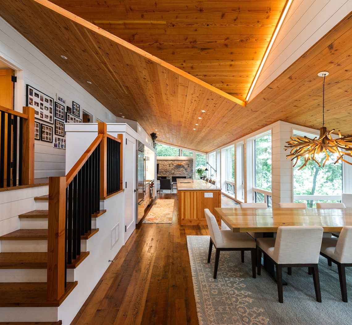 Kennisis Lake Getaway is a contemporary meets traditional home situated on Kennisis Lake. This home blends seamlessly into the natural landscape, creating a serene and welcoming living space.