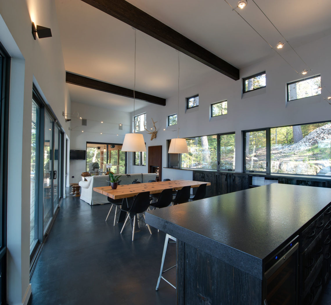 Kennisis Lake Modern is a contemporary home situated on Kennisis Lake. This home blends seamlessly into the natural landscape, creating a bold yet inviting statement.